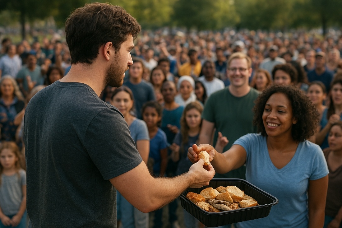 5 loaves of Bread and 2 Fish have caused many to follow his teachings.